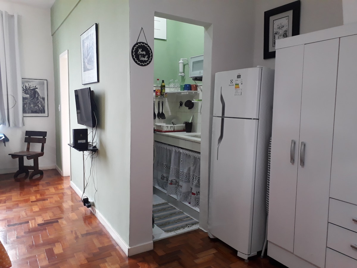 Estamos na Galeria Teresópolis, entre a Calçada da Fama e a Rua Duque de Caxias, a poucos passos das principais lojas, cafés e restaurantes de Terê. O apartamento é confortável e funcional: quarto com cama de casal e TV Smart, sala aconchegante com sofá, mesa para refeições e mais uma TV, além de uma cozinha equipada com tudo o que precisa para suas refeições. O check-in é automatizado e oferecemos roupa de cama e banho para a sua comodidade. É conforto do início ao fim da sua estadia.