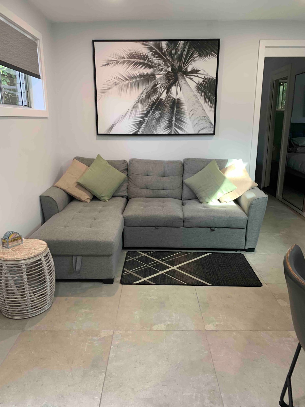 Our 1 bedroom guest suite comprises of the bottom level of our two storey house. It is perfect for couples or singles. It sleeps 2 however we do have a port-a-cot. It has its own private entry so you can have as much or as little interaction with us as you like. Please note there are six steps down from street level.