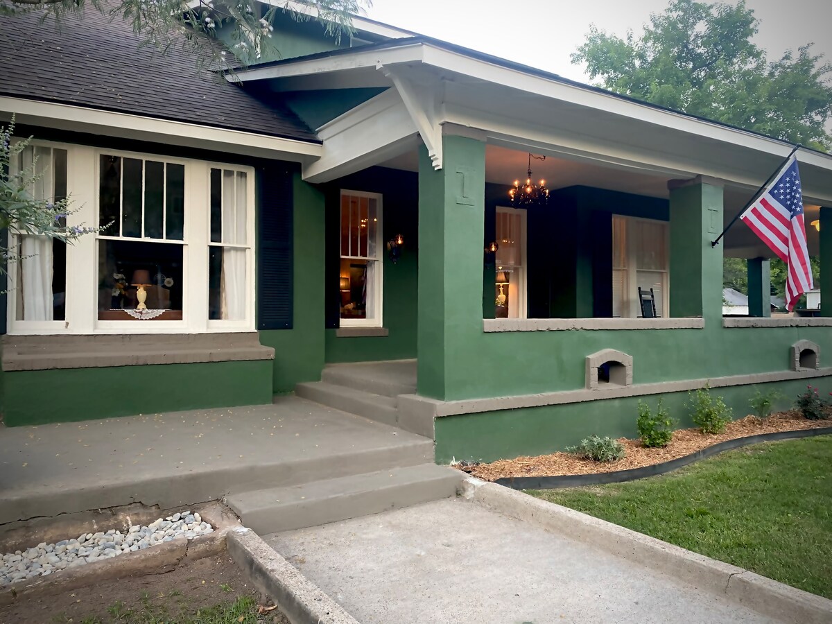 Schommel op de veranda, ruik de rozen in de bloembedden en laat je gedachten teruggaan in de tijd naar de jaren 1930 en 40 in onze Craftsman-stijl centraal gelegen woning aan Locust Street in de buurt van het historische centrum van Texarkana. Ons vintage huis is gelegen in een sociaaleconomisch divers, veel en blok, historische buurt op slechts enkele minuten afstand van het centrum. I-30, de luchthaven, winkels, golfen, sportfaciliteiten, medische faciliteiten en zowat elke stijl van restaurant die je maar kunt wensen liggen op slechts enkele minuten afstand.