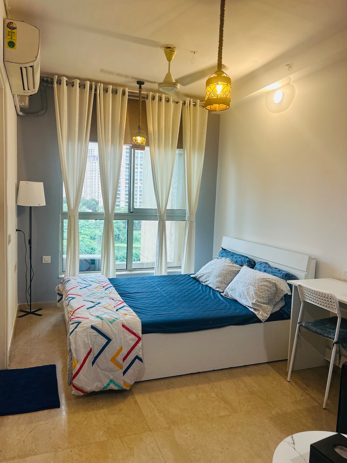 Welkom in onze studio met New York-thema op Hiranandani Estate, Thane - die stadsgevoel en strak design naar je verblijf brengt. Geniet van een pluche bed, slaapbank, smart-tv, wifi, volledige keuken, wasmachine en dagelijkse schoonmaak. Toiletartikelen, stoomgewassen handdoeken en 24/7 beveiliging inbegrepen. Op een steenworp afstand van cafés, restaurants en 'The Walk'. Perfect voor zakenreizen, behandelingen of een stedentrip.