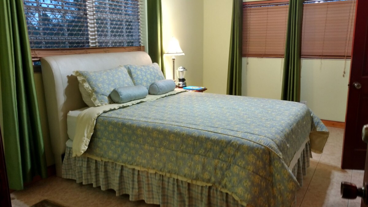Perfecte schuilplaats voor een stel of groep van maximaal vier die op zoek zijn naar een rustige plek. NIET de plek voor feestjes, bijeenkomsten of evenementen . Er geldt een toeslag van $ 25 per persoon (onmiddellijk te betalen) voor meer dan 4 personen. Gastenverblijf met 1 slaapkamer met queensize bed en queensize slaapbank voor maximaal vier personen. Oneindig zwembad met uitzicht op de oceaan is een gedeelde ruimte omdat het is verbonden met het hoofdhuis waarin de verhuurder woont. Volledig uitgeruste keuken. Woning heeft wasfaciliteiten en een generator.