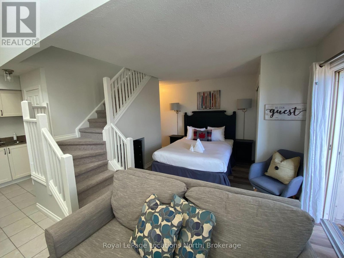 Ontdek de perfecte bergvakantie in onze vernieuwde ski-in/ski-out studio, gelegen naast de North Chair Lift. Het is ideaal voor stellen of kleine gezinnen en biedt een aangepaste keuken, een gezellige open haard, moderne afwerkingen en warme chaletcharme. Slechts 1 km van Blue Mountain Village, Scandinavische Spa, stranden, wandelpaden en geweldige eetgelegenheden, biedt deze stijlvolle retraite comfort, gemak en onoverwinnelijk avontuur het hele jaar door voor de deur. Ontspan, laad op en geniet van elk moment in deze uitnodigende schuilplaats.
