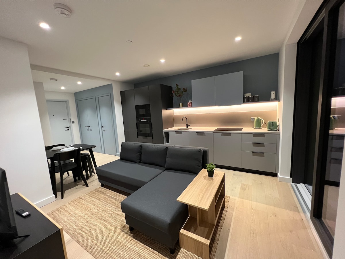 A calm, modern one-bedroom apartment designed for two adults — ideal for couples, work trips, or a peaceful London stay. Located near Canary Wharf, Excel with excellent transport links, fast Wi-Fi, and a comfortable space to unwind after a busy day Elegant riverside apartment overlooking the Thames and O2 Arena. With floor-to-ceiling windows and a bright, open-plan layout. Relax in a beautifully furnished living space, cook in a fully equipped kitchen, and unwind in a peaceful bedroom retreat.