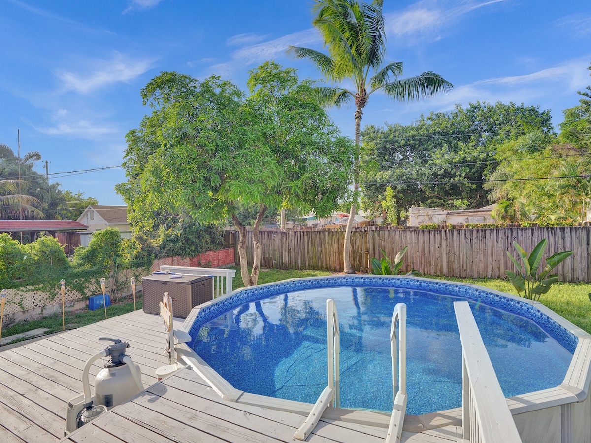Je moderne strandvakantiehuis ligt in een RUSTIGE chique woonwijk met een EIGEN VERWARMD AFGESCHERMD ZWEMBAD + BUITENTERRAS en EETRUIMTES + BILJART. De woning is volledig omheind met maximale privacy en een speciale werkplek met snelle wifi. Centraal gelegen: ★ 8 mijl naar Hollywood Beach & Hard Rock Guitar Resort Casino | 7 mijl naar Hard Rock Stadium (Miami Open, F1, concerten) en FLL luchthaven | 19 mijl naar Downtown Miami / Brickell / South Beach | 5 minuten naar Target, Starbucks, Publix (supermarkt)★