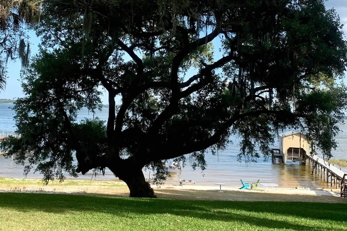 Cozy waterfront cottage on Haynes Creek. Whether its relaxing, fishing from your own dock, boating the Harris chain, paddle boarding, birdwatching, use our kayaks or pedal boat, or exploring the nearby towns and springs... we have it all. Fully equip kitchen, outdoor grilling area, wifi and cable, parking, laundry, gas fire pit on your private deck, boat parking at your dock or book a tour with Monster Bass fishing. Walkable to nearby stores or Gator Bay for a drink, meal, or music!