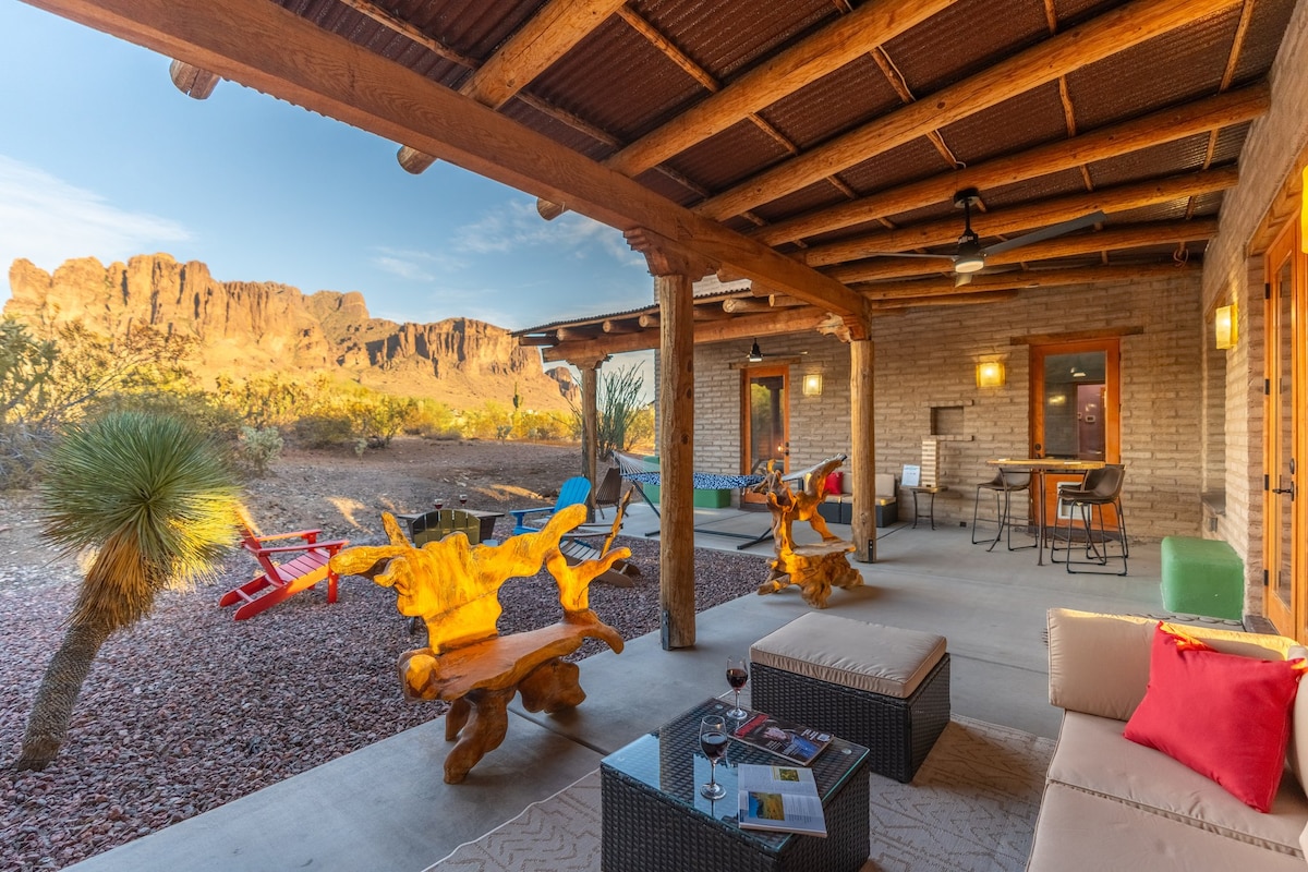 Onze bijna 2 hectare woestijnparadijs ligt rustig aan de voet van de Supersitions, waardoor je gemakkelijk toegang hebt tot onze talrijke lokale trouwlocaties, wandelingen en oude westelijke avonturen! Keer na een leuke dag terug naar je ruime privécasita, uitgerust met alles wat je nodig hebt voor een ontspannen verblijf. Je eigen buitenparadijs is perfect voor een afgelegen duik in je bubbelbad, een warm kampvuur op een frisse avond of zelfs een aangename zonsondergangswandeling door onze landelijke woestijnbuurt.