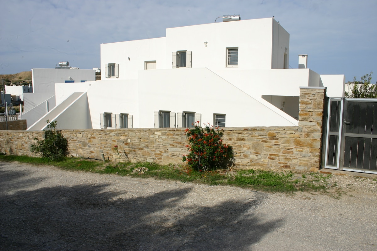 Ga er even tussenuit en verjong jezelf in deze vredige ruimte. Appartement met eigen ingang dat deel uitmaakt van een complex van 8. Samengesteld uit uitgeruste keuken (borden, oven, koffiezetapparaat), twee slaapkamers met tweepersoonsbed, badkamer met douche, woonkamer, veranda, parkeerplaats, airconditioning, wifi. De veranda kijkt uit op het zuiden van het eiland Ios met een prachtig uitzicht.