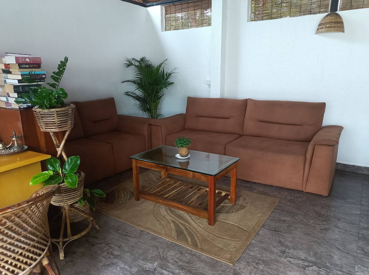 Dit gezellige privéhuisje ligt in een weelderige, boerderijachtige ruimte gevuld met groen, zitplaatsen in de buitenlucht en een ontspannende hangmat, perfect voor langzame ochtenden en rustige avonden. Ondanks de rustige omgeving ligt Kappil Beach op loopafstand 🌊, zodat je kunt genieten van schilderachtige strandwandelingen en zonsondergangen terwijl je terugkeert naar volledige privacy en natuur. Het beste van twee werelden Rustige nachten • 🌊 Gemakkelijke toegang tot het strand • Privéverblijf in een huisje. Ideaal voor koppels, soloreizigers en iedereen die op zoek is naar een rustige kustvakantie