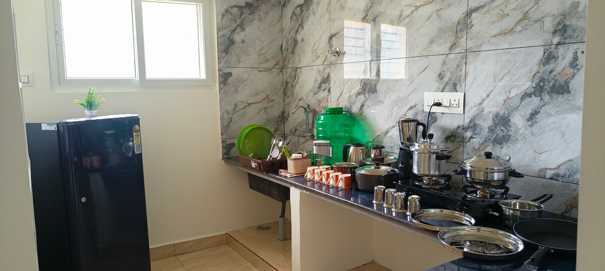 Een onlangs gerenoveerde 2 BHK met airco, smaakvol meubilair, verlichting, gloednieuwe voorzieningen @ hart van de stad, een rustige, residentiële locatie. We streven naar een vriendelijk, schoon, betaalbaar verblijf. Hal: bank, Diwan, 43 inch led-tv, DTH, wifi Eetkamer: tafel met 4 zitplaatsen en werkruimte Slaapkamer (2): 2 queensize bedden, 2 vloermatrassen, airconditioning, raamhanger Keuken: koelkast, inductiekookplaat, basiskeukengerei Badkamer (2): vloeibare zeep, Geyser, westerse toiletten Nutsvoorzieningen: wasmachine, UPS, droogrek