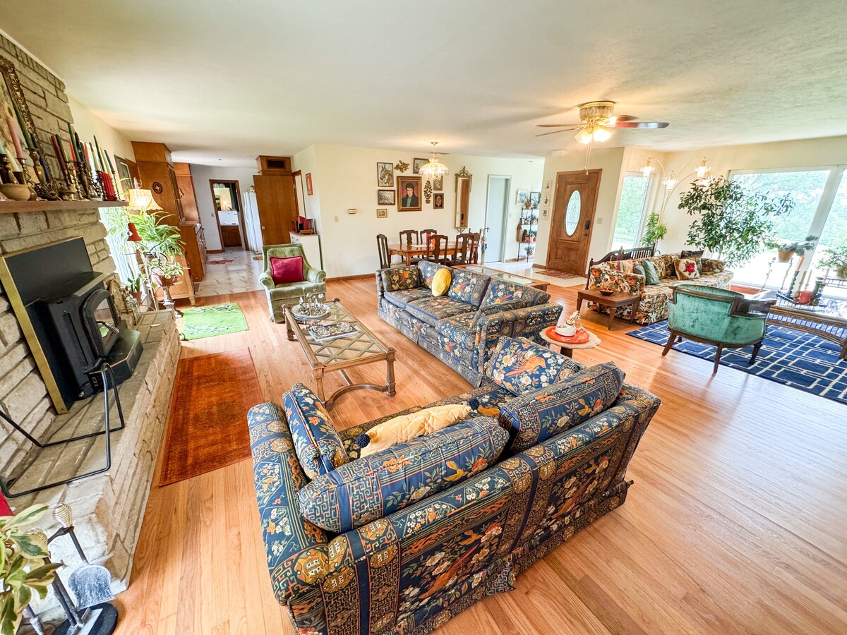 Enjoy a night in the country to relax and forget about your worries in this spacious and serene space. This listing is only the downstairs of a big farmhouse with 4 more rooms upstairs, if you need more room consider finding us as Windy Acres and renting the whole house!