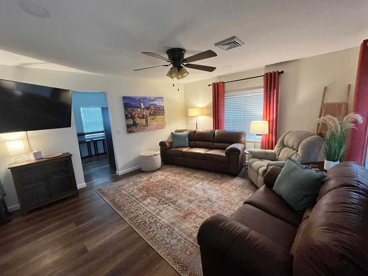 Kick back and relax in this calm, stylish space. This space is great for a family or a quiet place to work. There is plenty of space for air up mattresses for bigger families. Also a fenced in front yard for your children or pets. We do not allow any smoking OR vaping of any kind in our Airbnb! We want all guests to feel comfortable! We do allow pets but for an additional pet fee!