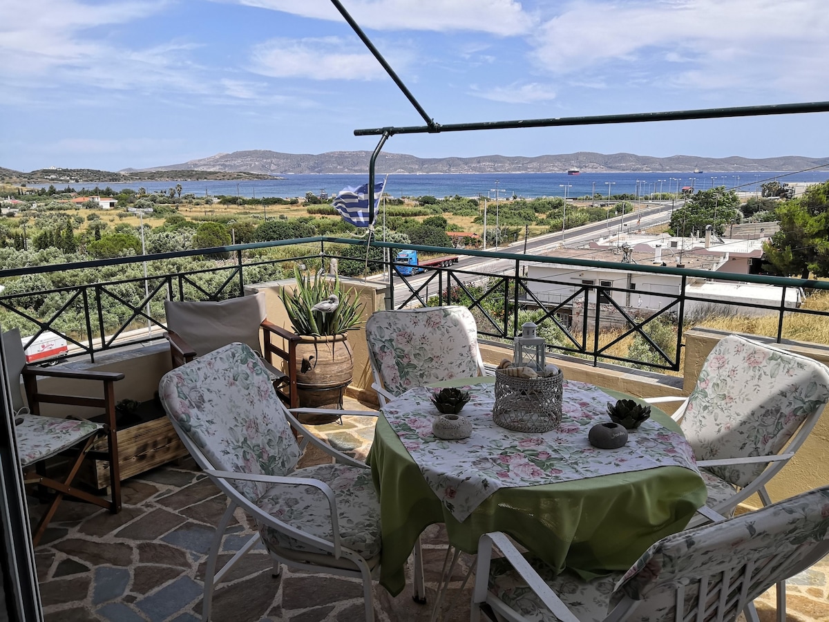 Spacious and bright flat only 5 minutes walking distance from the city centre, where all the restaurants, cafes and shops are and 10 minutes from the port. Easy transportation links to Athens and Sounio (where most beaches and the famous Temple of Poseidon are). The flat is located on a small hill offering a magnificent view of Lavrio city and the port. The large balcony is perfect for relaxing and enjoying the view.