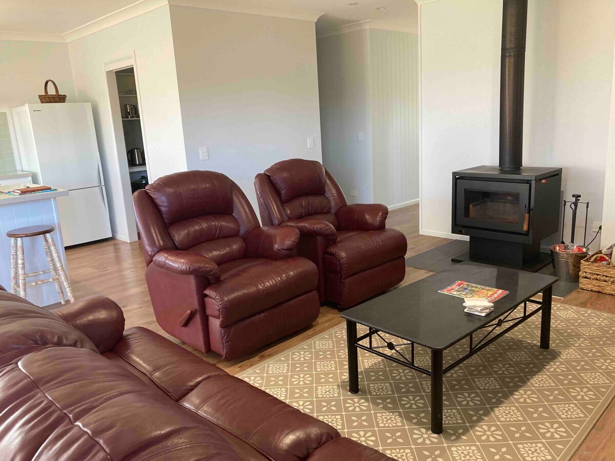 The Hideaway is a newly renovated three-bedroom home with the master bedroom on a mezzanine with spiral staircase access, two bathrooms and modern facilities. The front veranda and back deck will have you wanting to spend plenty of time outside enjoying the crisp air and starry skies. The cosy wood fire and outdoor fire pit area will keep you warm on the cooler nights. Located in a quiet part of town, you will get the country feel without the seclusion and are just a short walk from town.