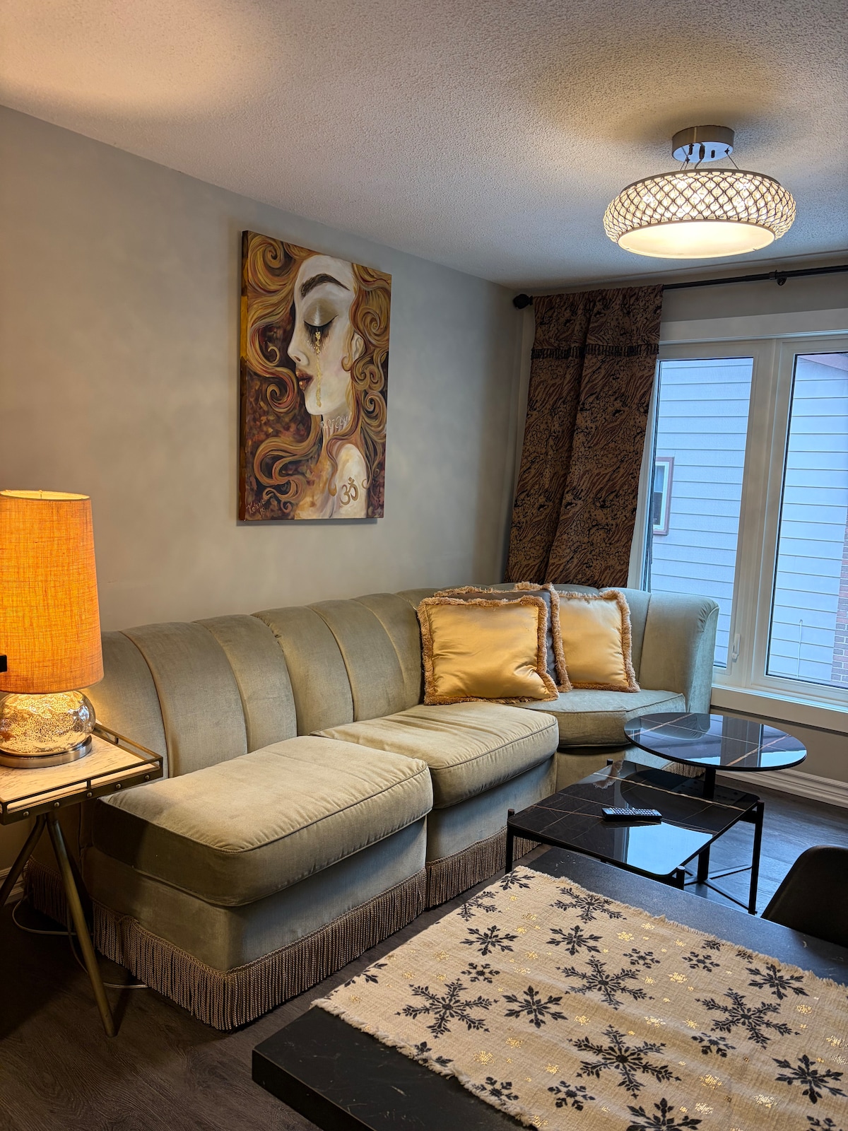A walk-out basement apartment in Richmond Hill. This sunlit apartment has abundance of natural lighting streaming through the many large windows. It has a full kitchen, a full laundry room with a washer and dryer, a designated parking space for one car, and free Wi-Fi access. Perfect for couples or small families, this apartment comfortably accommodates two adults and up to two children.