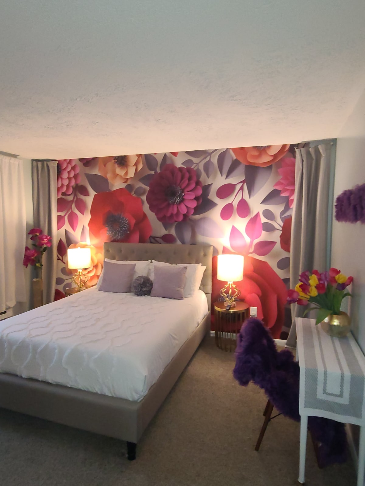 Ontsnap naar een gezellig herfstverblijf in de buurt van Kalahari, Mount Airy Casino, Crossings Outlets, Lake Wallenpaupack en Tobyhanna State Park op 3 km afstand met herfstbladeren en berglucht, uitzicht op het meer, wilde dieren en picknickplekken. Gelegen aan een ruige privéweg. Deze retraite in spa-stijl heeft een bad, regendouche, slimme verlichting, keuken met slim fornuis, pluche bedden, LED-spiegels met muzieksynchronisatie en retro arcadeplezier. Perfect voor stellen, verjaardagsuitjes of gezinnen die op zoek zijn naar een rustig verblijf in de Poconos met moderne voorzieningen.