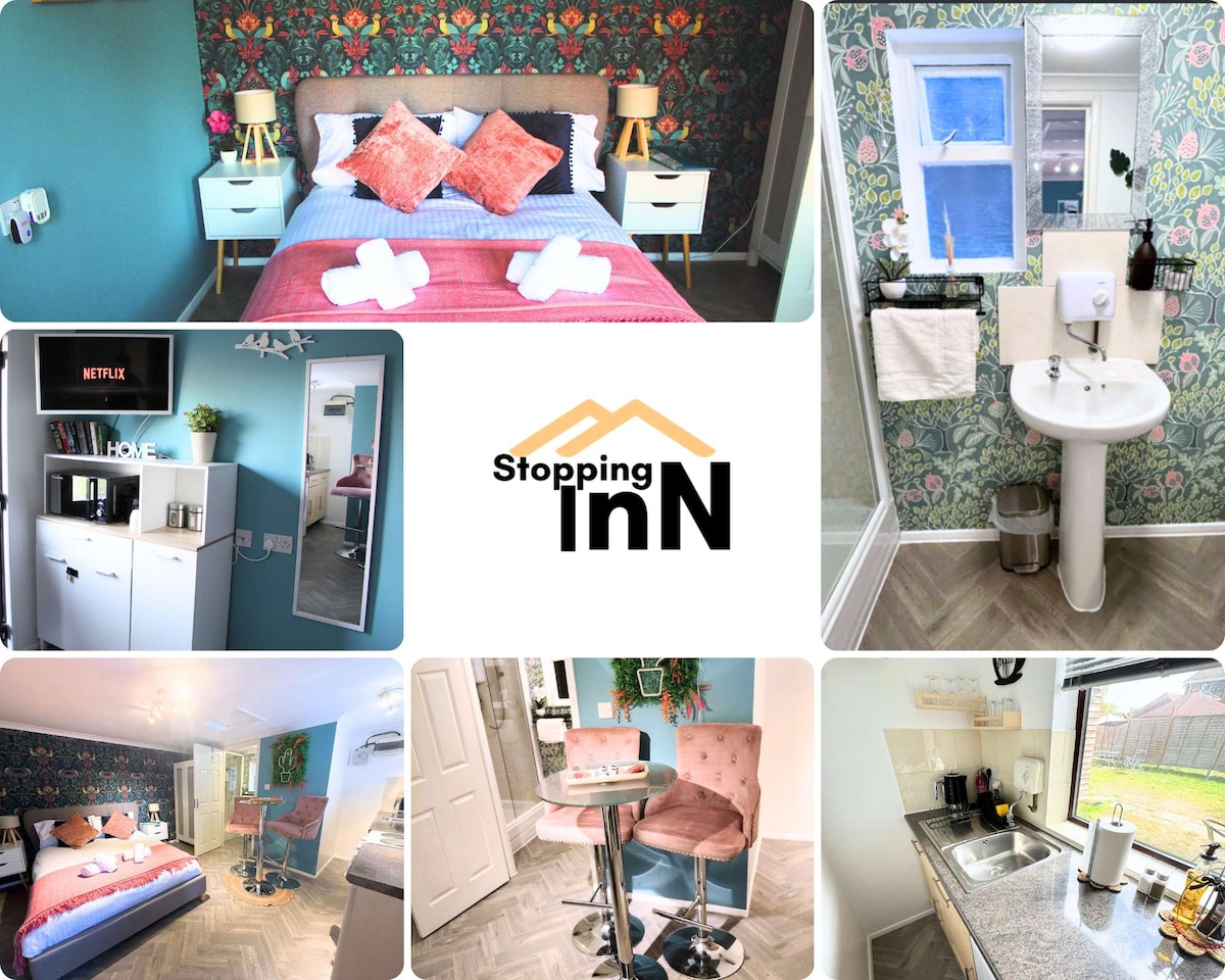 Een aparte, vrijstaande zelfstandige hut met eigen toegang, gelegen naast ons thuis . Onze gezellige hut heeft een gezellige woonkamer met bank, een volledig uitgeruste keuken, een aparte badkamer met douche en een tweepersoonsslaapkamer met een tweepersoonsbed van 4 voet, een kledingkast en laden. Verwarming/airconditioning. Thee, koffie, suiker en melk verstrekt. Parkeerplaats op de oprit beschikbaar op aanvraag (oprit is mogelijk niet geschikt voor grote voertuigen, maar er is voldoende gratis parkeergelegenheid op straat) Niet geschikt voor baby 's