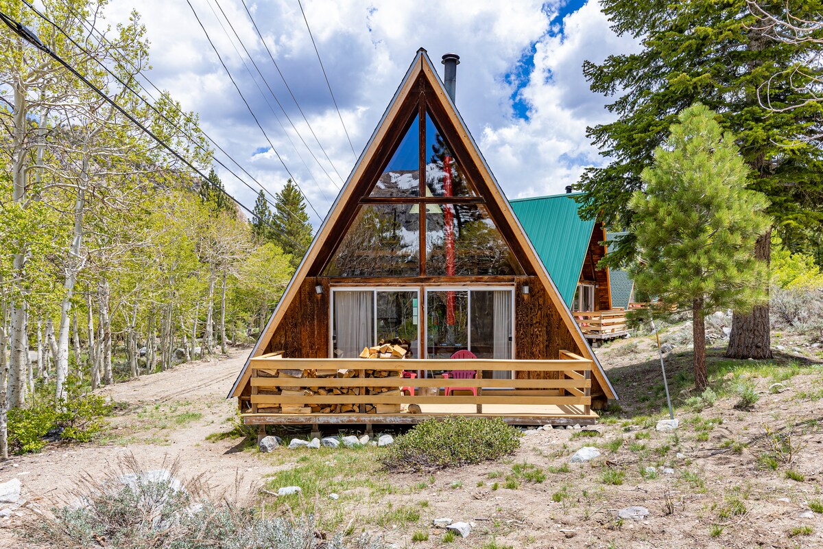 Located in June Lake, 26 mi from Yosemite Tioga Pass during summer, in an area where skiing and snow sports can be enjoyed. The home is 1/2 a block to the edge of June Lake. It has 2 bedrooms and 3 TVs. A full kitchen and 1 bathroom with a clawfoot tub and shower. Gas heat and Wood stove with fire wood. Great Internet and Desk space. Walking distance to Marinas, restaurants, and brewery. 1 mile to the ski lifts at June Mountain. Pet friendly. Relax and enjoy the deck, lake and skiing.