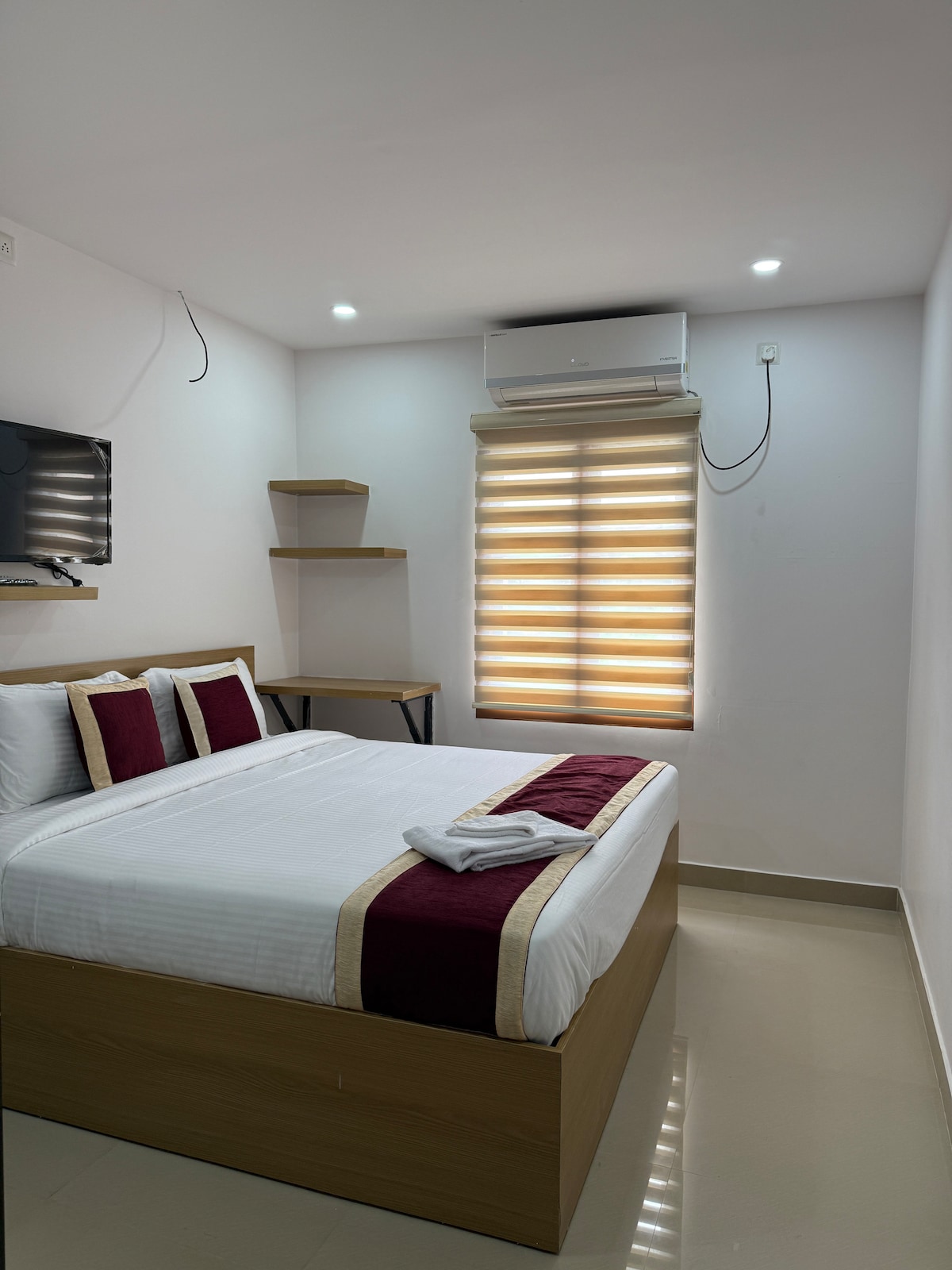 Welkom bij Eleven Space Kochi gelegen in Vazhakkala Kakkanad. Gloednieuwe kamer met airconditioning van 250 vierkante voet. Afstand: slechts 2 km van Kakkanad, 5 km van Infopark, 4 km van Edapally en 25 km van de luchthaven van Kochi. Ideaal voor stellen, IT-professionals, gezinnen en zakelijke reizigers. Alle kamers met airconditioning zijn voorzien van warm water, handdoeken, toiletartikelen, tv met kabelverbinding, gratis wifi en stroomvoorziening. Centraal gelegen in Ernakulam voor een comfortabel en handig verblijf in Kochi. 24X7 conciërgeservice.