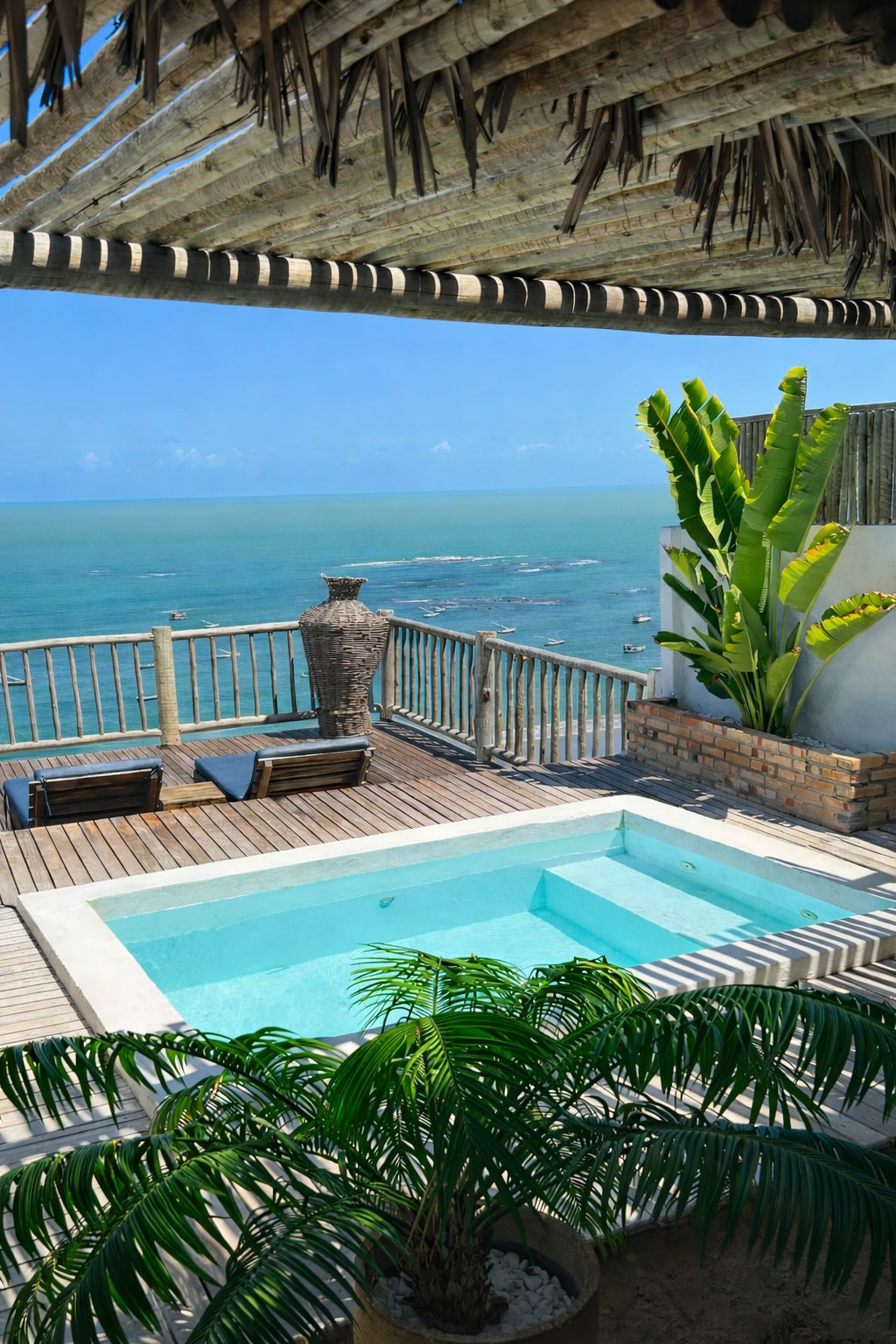 Discover the unique experience of staying at Casa MenyBlu. Inspired by Greek architecture, this modern and sophisticated home offers breathtaking views from sunrise to sunset. With direct access to Barreiras Beach, the house features open-concept spaces and is surrounded by nature. It’s the perfect stay for families or groups of friends looking for a beachfront getaway, outdoor activities, and a deep connection with the coast of Ceará without giving up comfort and elegance.