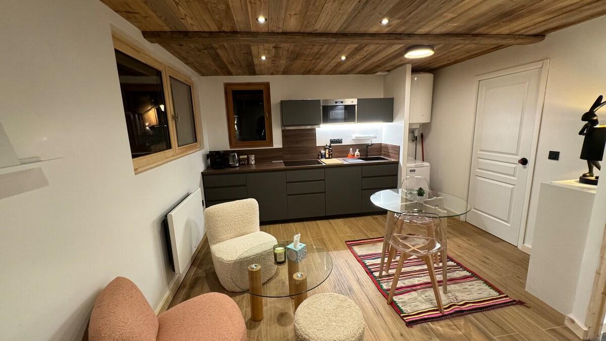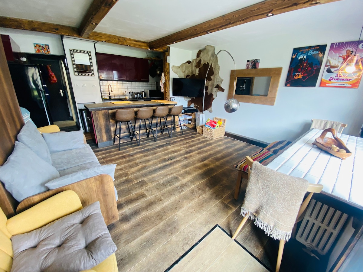 Prachtig luxe appartement-chalet van 110m2, met terras. Profiteer van 3 ruime slaapkamers op de benedenverdieping. Het appartement is nieuw en is ideaal gelegen aan het einde van de helling 'Le Laisinant'. Het ligt op 200 meter van de bushalte, op vijf minuten lopen van alle winkels in het centrum en toegang tot de skiliften. De terugkeer gebeurt op ski 's. Parkeren en een gesloten doos met directe toegang tot het appartement kunnen twee auto' s parkeren.