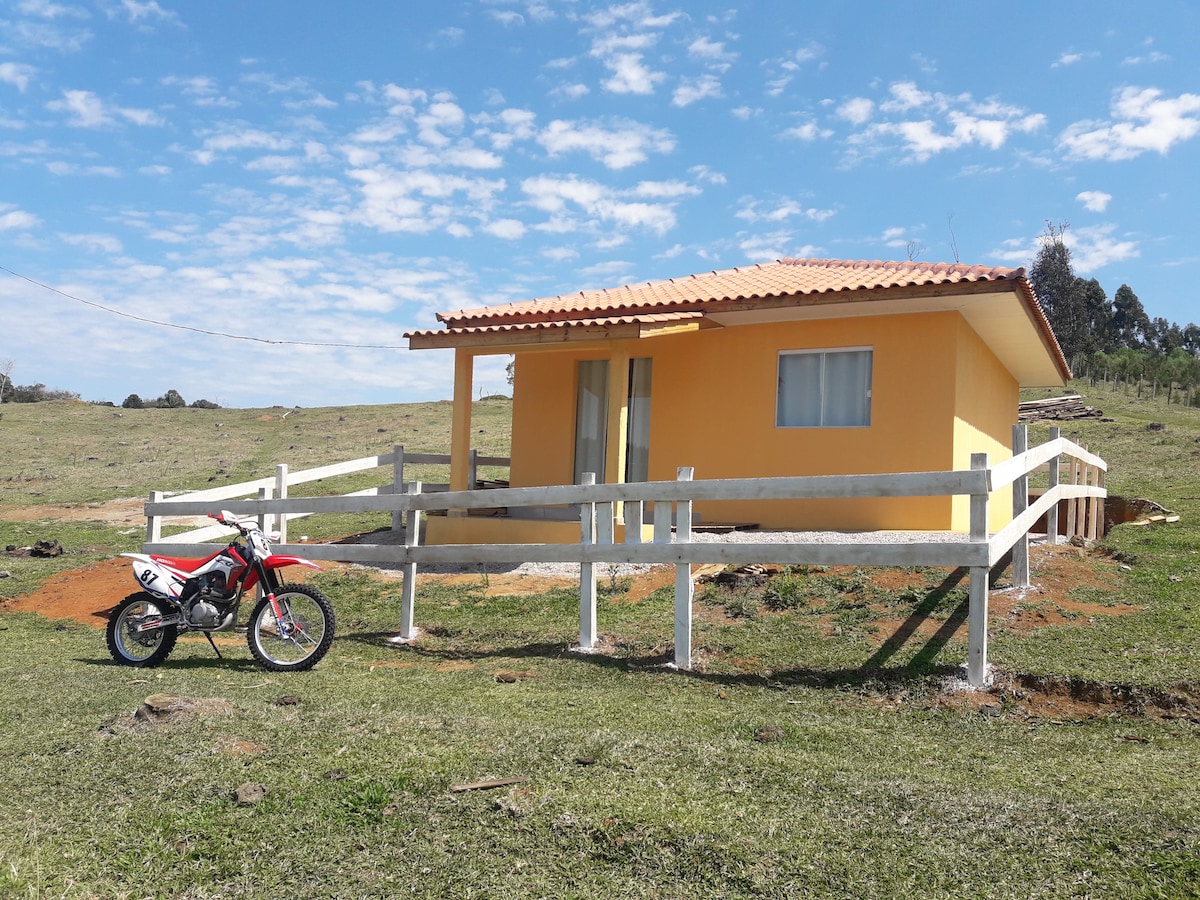 Chalé com jardim amplo/chácara, 40 min de Curitiba