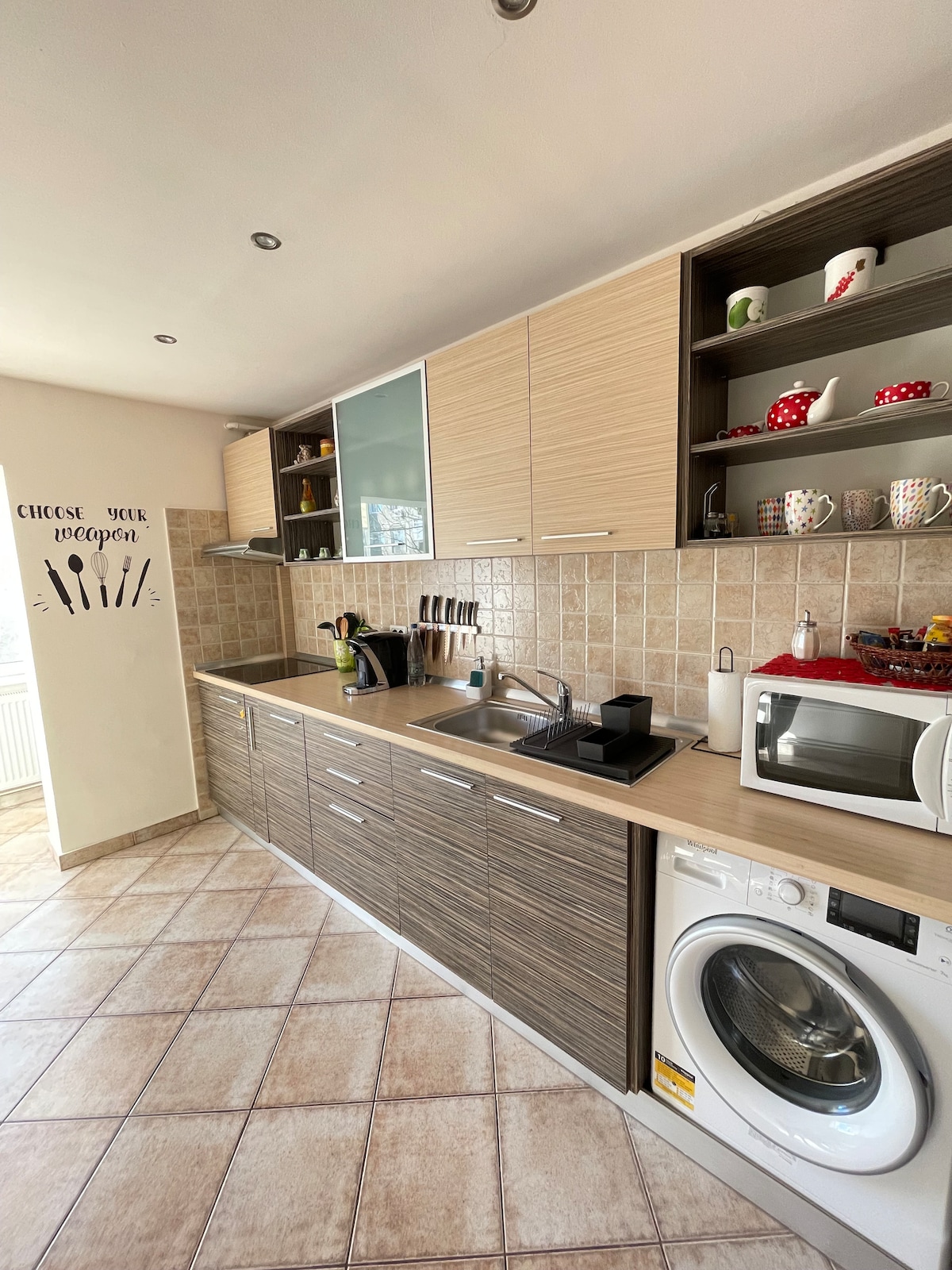The fully equipped, very bright apartment is located in a 10 minutes walking distance from the city center. Many storesand a farmers market are just 3 minutes away. The bedroom has a double bed (160 x 200) and fits 2 people and an infant, too. In the living room you can find an expandable sofa bed for one/two persons, a dining space and a working desk. Fast and free Wi-Fi available. The apartment is located on the second floor of a condo, in a safe and quiet area.