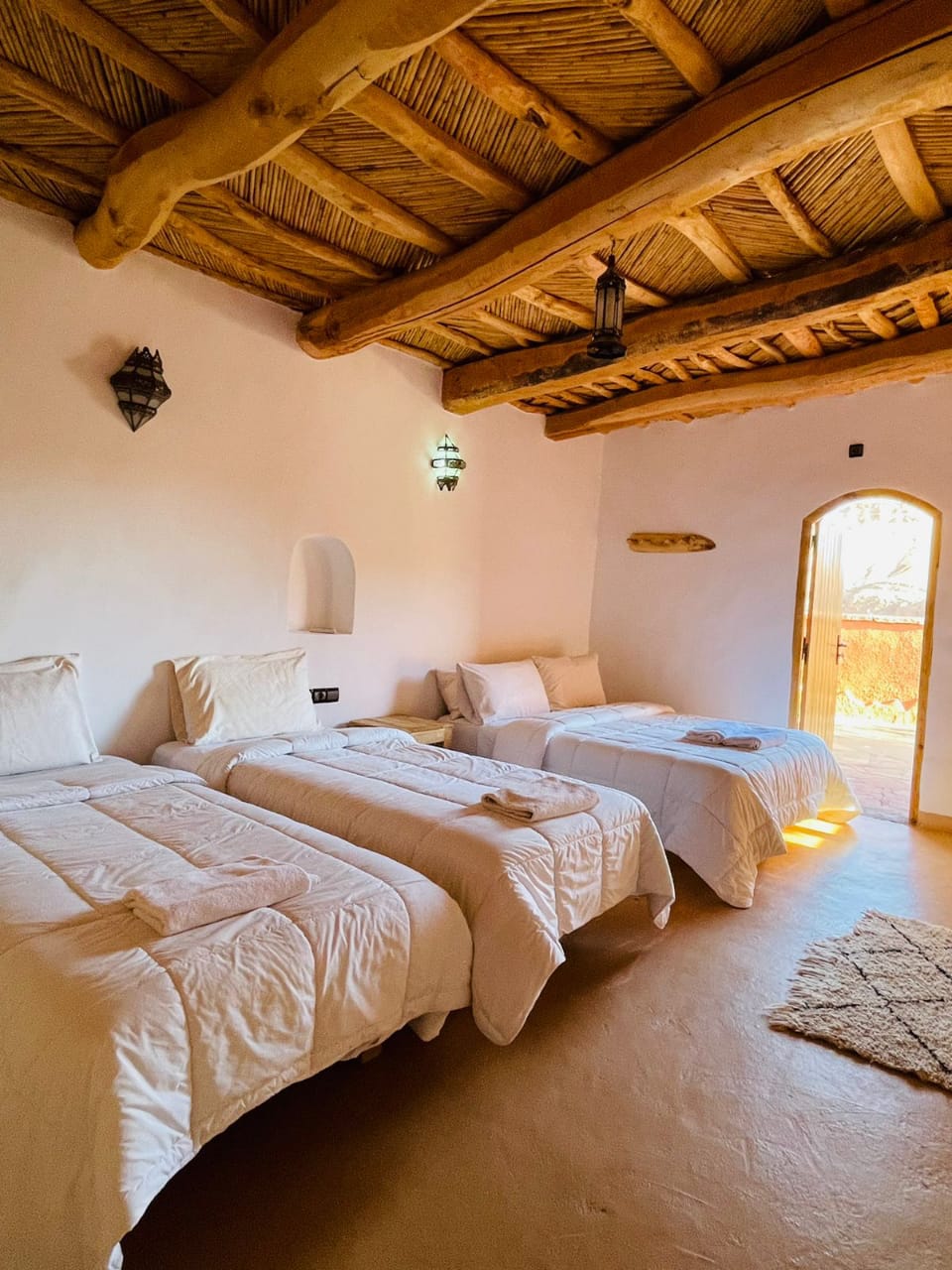 Deze royale tweepersoonssuite op de eerste verdieping biedt een charmante Marokkaanse inrichting en klassiek comfort voor je verblijf. Het heeft een prachtig uitzicht over de bergen, de oase eronder en de beroemde 'Monkey's Fingers' -kliffen.