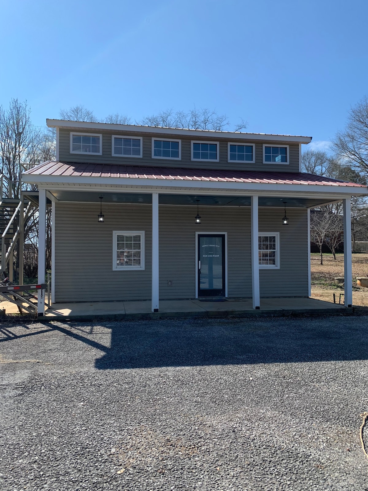 The Loft on main is located in Belmont MS just minutes from the Tenn-Tom Waterway. Where you can experience hunting, fishing and boating at your leisure. The Loft offers a short walk up a flight of stairs to a two bedroom industrial style Apartment. Each bedroom is equipped with a 32" Smart TV, Small closet, toilet and vanity. Both bedrooms share access to a large soaking tub for rest and relaxation. The Loft includes a large fully equipped kitchen, living area, breakfast nook and coffee bar