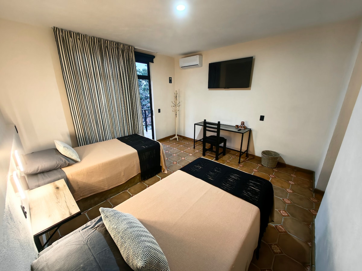 Spacious room with Queen bed and self check-in ✔ Queen-size bed ✔ Smart TV with streaming platforms ✔ High-speed internet perfect for remote work ✔ Ceiling fan and hair dryer ✔ Designated mini-fridge ✔ Private bathroom with elegant finishes ✔ Shared kitchen per floor equipped ✔ Rooftop with outdoor dining and panoramic views This suite blends comfort, space, and modern design in an unbeatable location in Colonia Americana. just steps from Chapultepec’s cafés, restaurants, and art galleries.