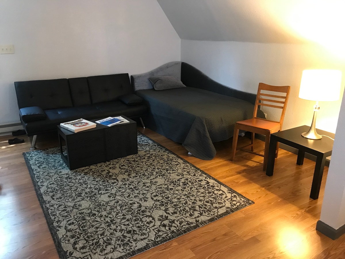 Centrally located to 3 colleges and 2 hospitals in a peaceful neighborhood, this cozy, open concept studio guesthouse is perfect for a short- or long-term stay. This newly renovated garage apartment to guesthouse requires no steps and features a spacious fenced in area for your pet. Creativity abounds in this uniquely decorated space. It features a king-sized bed as well as queen sized sofa sleeper. The kitchen is well stocked and has a coffee/tea bar for your enjoyment. Pets are welcome.