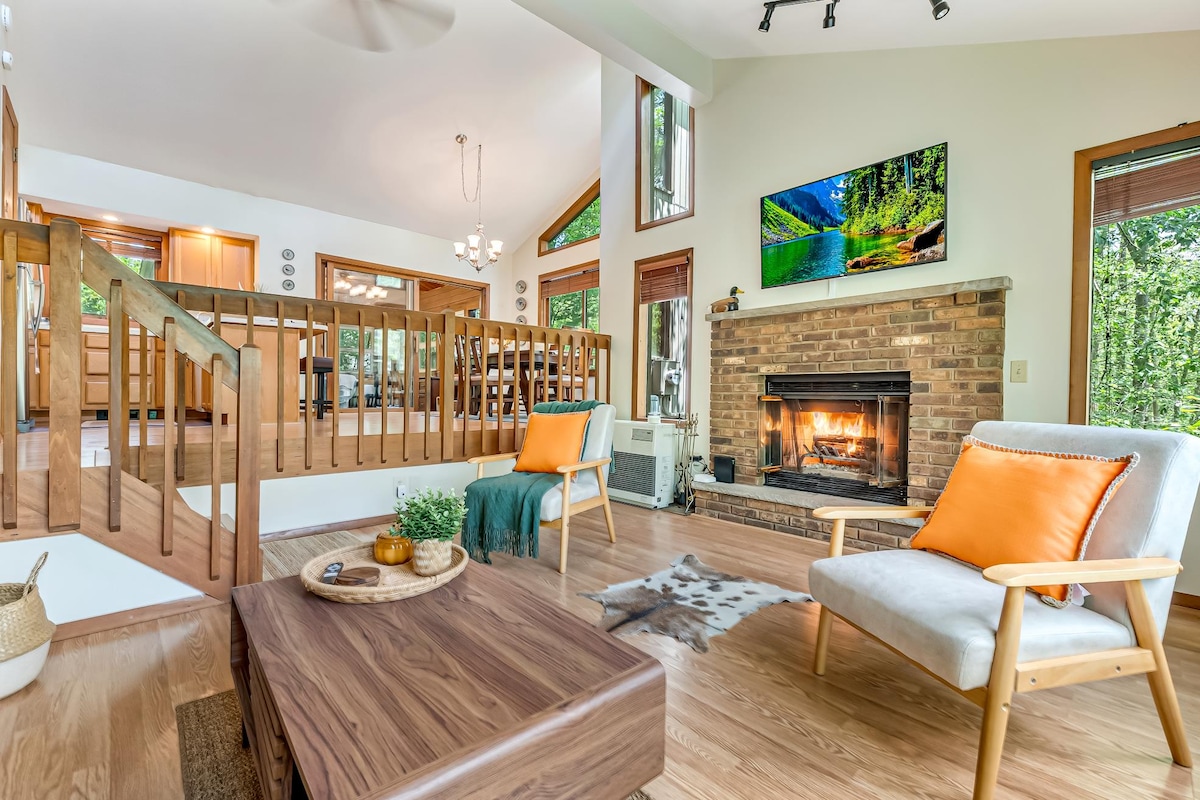 Op 2 minuten lopen van het strand!! (zie foto's) Deze stijlvolle woning met 4 slaapkamers/3 badkamers in de Poconos biedt een rustige ontsnapping met ruimte voor maximaal 10 gasten. Geniet van een speelkamer met pingpong, zwembad, poker en Pac-Man, plus een spa-lounge met een sauna en een bubbelbad. De open woonkamer, vuurplaats, moderne keuken en gezellige slaapkamers zorgen voor een uitnodigende sfeer. Ontspan op het terras met een grill en eetgelegenheid in de buitenlucht, allemaal in een bosrijke, privéomgeving dicht bij waterparken, wandelpaden en skiplekken. Een perfecte mix van plezier en ontspanning!