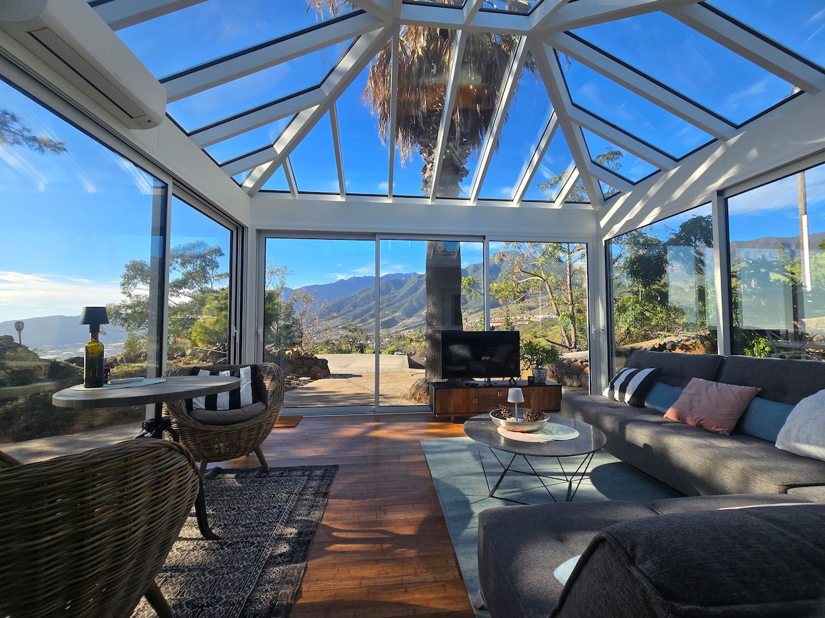 Romantisch und ruhig gelegenes Ferienhaus in künstlerischem Ambiente auf der sonnigen Westseite. Auf der West-Terrasse erlebst Du herrliche Sonnenuntergänge über dem Meer. Im uneinsehbaren und windgeschützen Garten genießt Du das Bergpanorama, Stille und das Frühstück in der Morgensonne. Nur zehn Autominuten von Los Llanos und 15 Autominuten vom Meer und der Caldera entfernt wohnst Du ruhig und zentral auf 400 m Höhe. GLASFASER INTERNET (!). Bus-Stopp 400m entfernt, Buchung ab 5 Nächten.