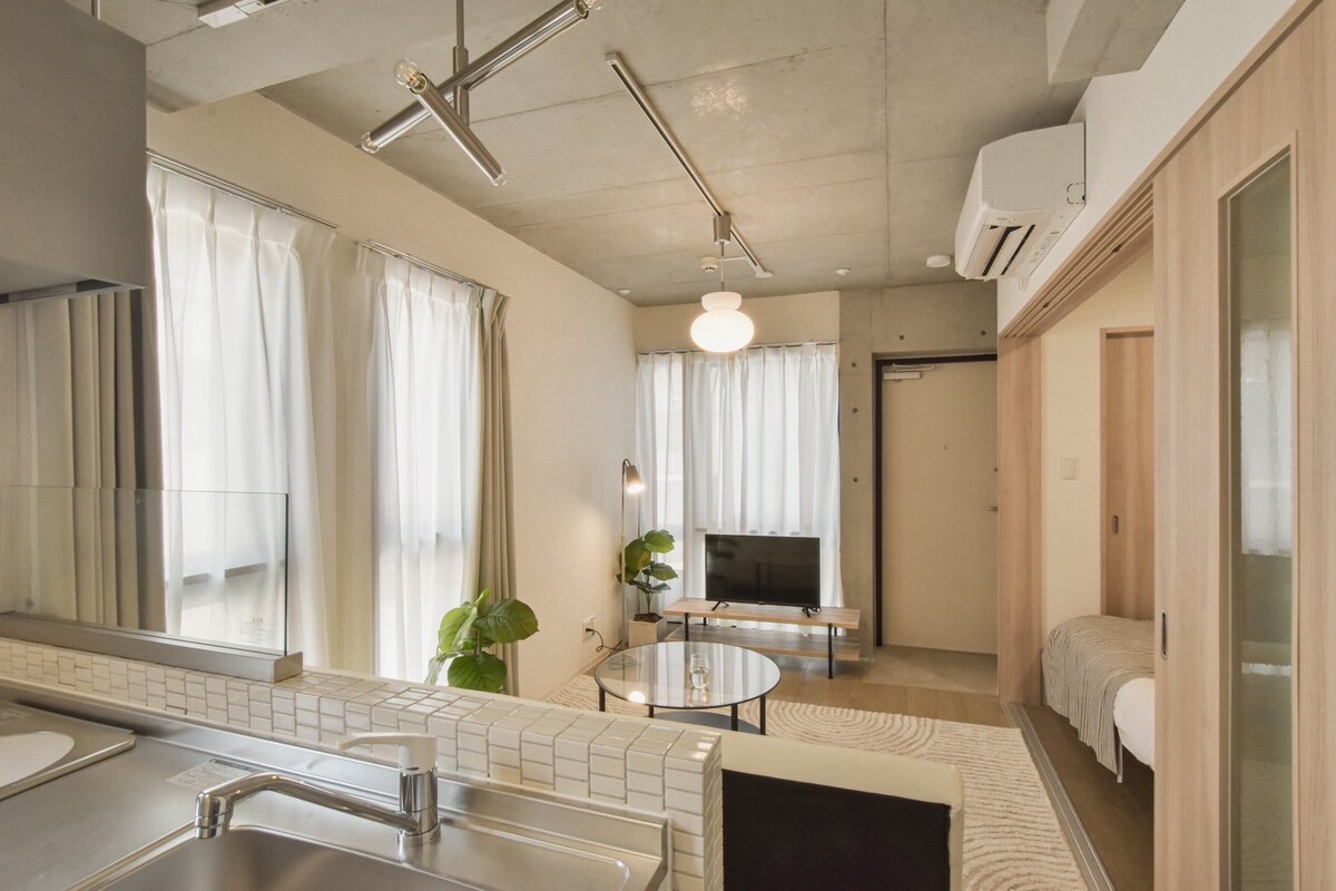 Veilig · Nieuw Japandi Studio | Dichtbij JR · Metro | Alles-in-één wasmachine en droger | Lift | Bagageopslag