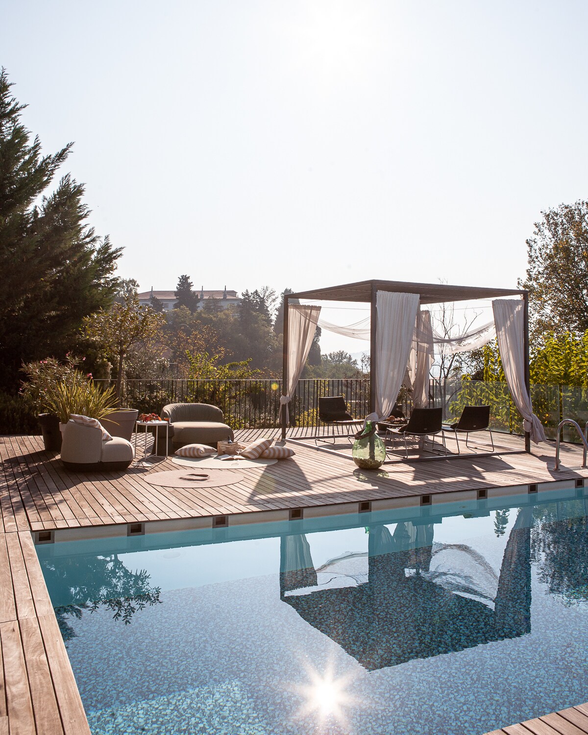 Vakantiehuis bij zonsondergang met bubbelbad en terras