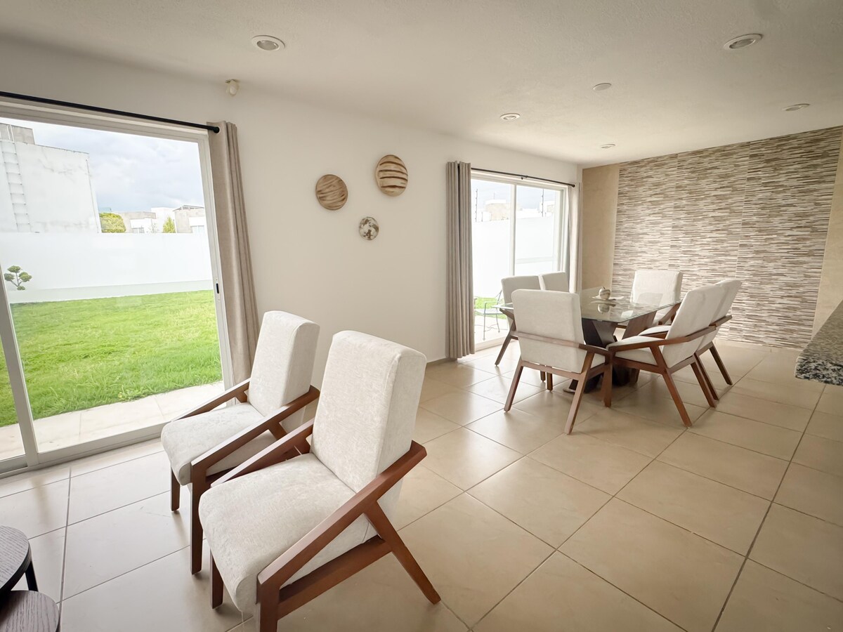 Eigentijdse residentie gelegen op een van de mooiste locaties in Metepec. 24/7 beveiliging, omgeven door groene gebieden en winkels. Het heeft een grote tuin en is uitgerust met gloednieuwe meubels, beddengoed en apparaten. Het heeft 4 slaapkamers, de hoofdslaapkamer heeft een tv. 7 bedden en 2 slaapbanken in de woonkamer met tv, plus 3,5 badkamers. Geschikt voor maximaal 10 personen. Ideaal voor familie en werkgroepen. FEESTEN EN HARDE STEMMEN OF APPARATEN ZIJN VERBODEN. ROOKVRIJE RUIMTE