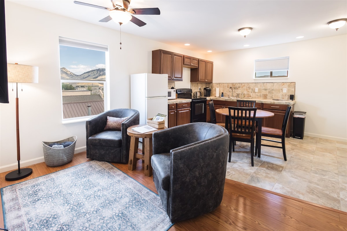 Private getaway for two with a stunning view of the Absaroka Mountain Range in Paradise Valley. A little more remote providing the real Montana experience. Under 10 min drive to restaurants, bars, stores, and local concert venues. Come unwind after seeing live music at Pine Creek Lodge, The Old Saloon, or the Music Ranch. 15 minute drive to Chico and Sage Lodge. 45 minute drive to Yellowstone National Park and 30 minutes to Livingston. We can't wait to be apart of your Montana experience!