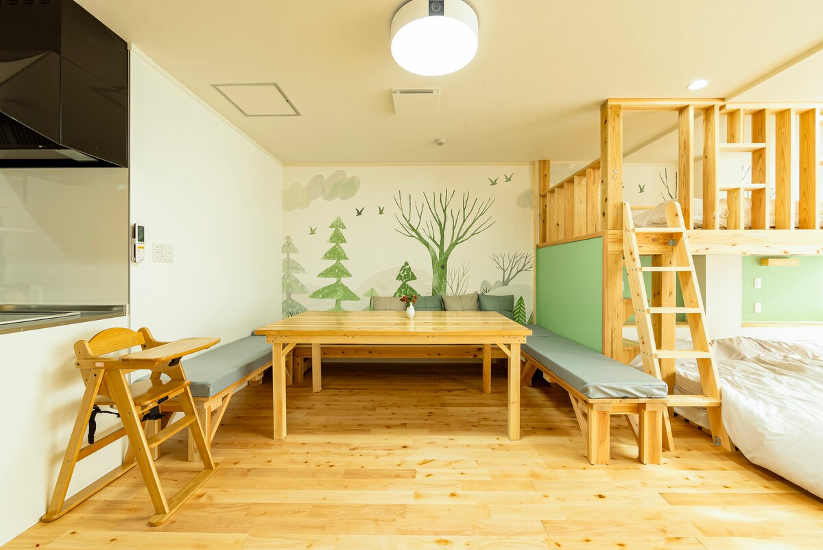 Een leuke en ontspannende herberg waar het hele gezin kan glimlachen. "Goen-Littele hatchi" is in november 2025 volledig gerenoveerd en is herboren als een comfortabele en veilige ruimte. Het is gelegen in een bruisende winkelstraat, met een supermarkt recht voor je.Stations langs de weg, aquaria en Aeons liggen allemaal op loopafstand, waardoor het handig is voor bezienswaardigheden en het dagelijks leven. 40 minuten rijden naar Hawaiians.Aanbevolen als uitvalsbasis voor bezienswaardigheden in Iwaki City. Er is een glijbaan en boulderen in de kamer voor kinderen om van te genieten.Er is ook een warm houten kinderverstopplekje en een speeltuin die spannend is om in de stad te zijn. Een kleine kamer in Japanse stijl met 4 tatami's is beschikbaar voor gasten met baby's om met een gerust hart te verblijven.Het is een rustige en kalme ruimte die perfect is voor een dutje. De faciliteit is gelegen in een huurdersgebouw dat geen woningen heeft. Er zijn geen bewoners boven, onder of naast de deur, dus je kunt genieten van je verblijf zonder je zorgen te maken over de voetstappen of stemmen van kinderen. Deze plek is perfect voor gezinnen en kinderen. Het is geschikt voor maximaal 8 personen en is perfect voor gezinnen en groepen. Speel overdag energiek en ontspan 's avonds met je gezin. Zelfs in de stad is dit een plek waar kinderen en volwassenen samen kunnen ontspannen.