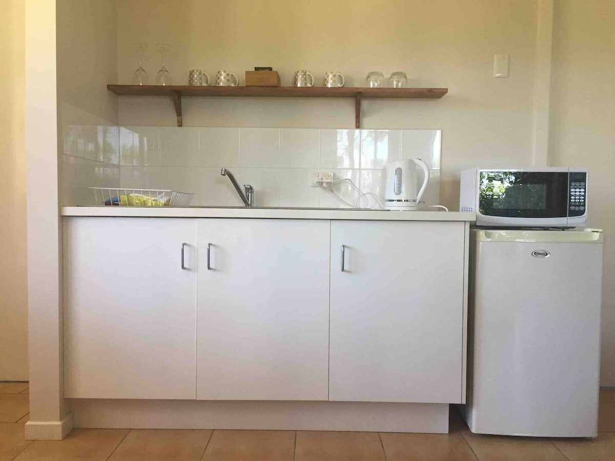 Rust en tank na een lange dag reizen of verkennen in dit privé, veilige en zelfstandige gedeelte van ons huis gelegen in een rustig landgoed in de buurt van Sawtell. Centraal gelegen op slechts een klein stukje rijden van de snelweg, winkels, restaurants, universiteit, ziekenhuis, sportvelden, stranden, nationale parken, de Coffs CBD en 25 minuten naar de funky stad Bellingen. Compleet met een eigen ingang, binnenplaats, 3-weg badkamer, plus keuken (met de benodigdheden - waterkoker, magnetron, broodrooster en koffiezetapparaat).