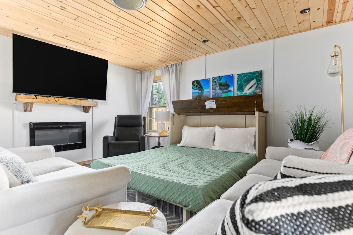 Als je bij ons verblijft, stap je in de magie van Fernside, ons geliefde A-frame toevluchtsoord aan de Sturgeon River in Indian River, Michigan. Stel je voor dat je wakker wordt met warm zonlicht en de rustgevende melodie van de rivier. Het is niet alleen een uitje; het is je ticket naar pure sereniteit en opwinding. Fernside is waar elk moment aanvoelt als een avontuur dat wacht om zich te ontvouwen. We kunnen niet wachten tot je de vreugde van dit gezellige toevluchtsoord ervaart!