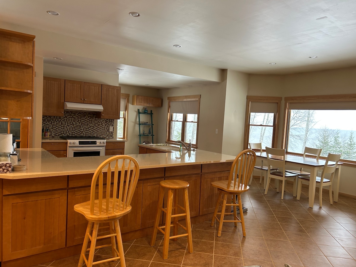 Graystone Cottage is onlangs bijgewerkt in 2018 en ligt direct aan Lake Superior met 100 voet aan grijze stenen strandgevel. Geniet van je ochtendkoffie op de ruime patio met een panoramisch uitzicht op de Huron Mountains en Little Traverse Bay. Misschien kun je een Bald Eagle-vissen of vliegen naar het nabijgelegen nest. Ga voor die ontspannende zomeravonden op het grote dek zitten en zie de maan opkomen of marshmallow roosteren op een kampvuur terwijl je luistert naar de golven die slaan. 2 kajaks en zwemvesten beschikbaar voor gebruik.