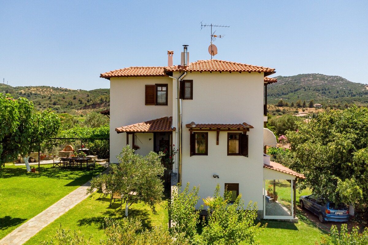 We hebben een gezinswoning van 1955 gerestaureerd en het lokale, traditionele element gekoppeld aan de moderne levensstijl. De accommodatie is gelegen op een heuvel tegenover het Byzantijnse kasteel van Toroni en de beroemde kust. De villa biedt een panoramisch uitzicht op de zee en de bergen. Het biedt een weelderige groene ruimte van 500 m ², met een goed ontworpen ruimte voor echte rust. De locatie is letterlijk bijzonder omdat het dichtbij is en tegelijkertijd weg van de vele.Fora weinigen....