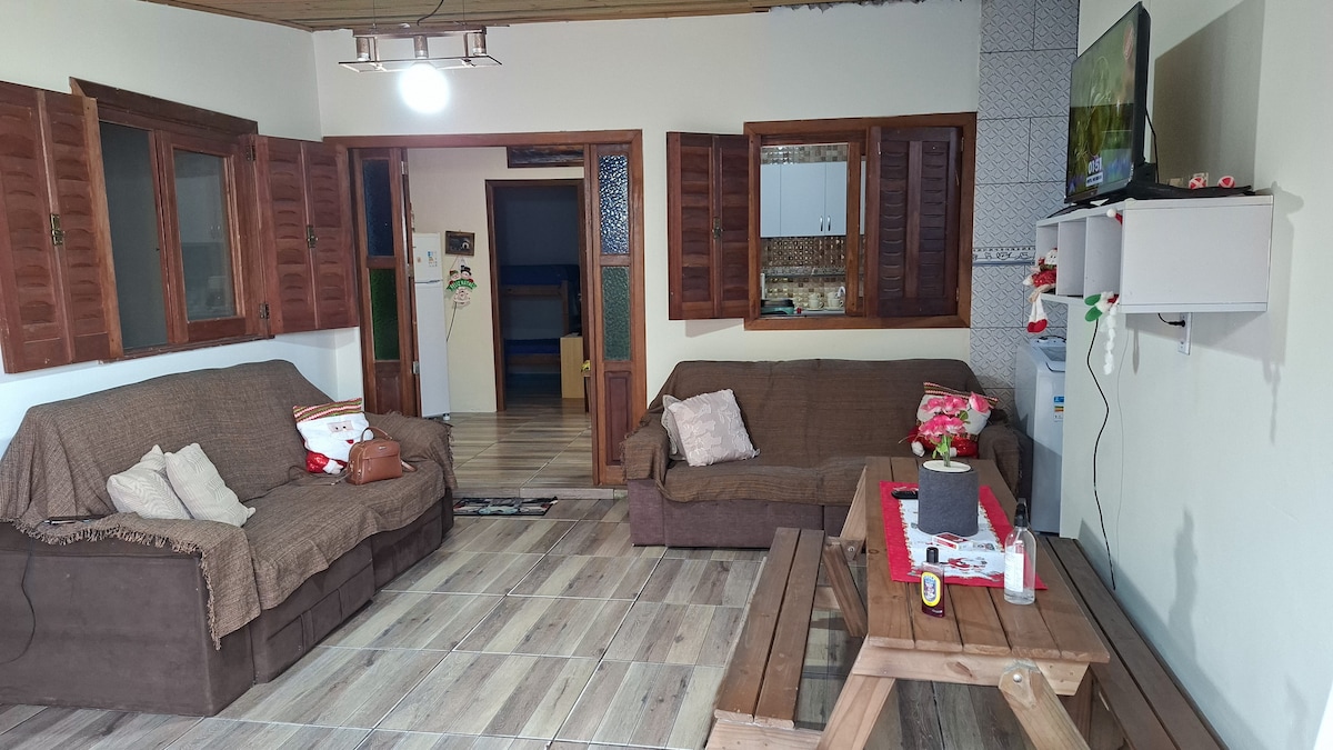 Kom en verblijf in dit geweldige huis gelegen in Praia Real in Torres - RS, 15 km van het centrum van Torres. De accommodatie ligt op drie blokken van de zee, heeft 3 slaapkamers, waarvan één een eigen badkamer, en een sociale badkamer. Huisdieren zijn van harte welkom. Geweldige plek om te rusten en te genieten van je vakantie in Tranquilidade. Patio allemaal gazon en afgesloten, met goede ruimte, barbecue , een goed geventileerd huis. Bad- en gezichtshanddoeken zijn niet inbegrepen, lakens, kussens. Minimumaantal nachten: 3 dagen