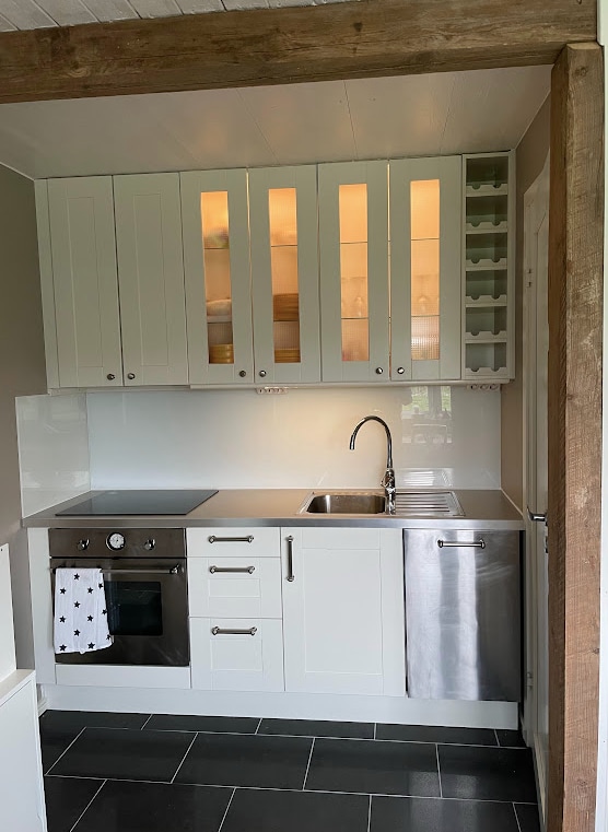 I detta boende på 25m2 finns det mesta. Ett fullutrustat kök, grill och även en mysig privat uteplats. Börja dagen med att följa cykelvägen ned till Möstadparken för ett morgondopp i underbara Ivösjön. Här finner ni även en lekplats för barnen. För den som vill bada från brygga är ett besök på korsholmens badplats ett alternativ. (700m) Där finner ni även en restaurang. Vill du uppleva Bromöllas fina natur från vattnet så erbjuder vi uthyrning av kajak (2st) på boendet mot extra kostnad.