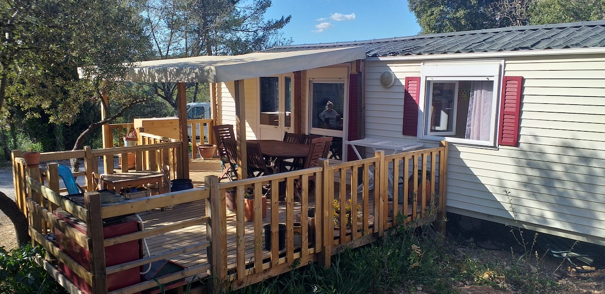 Kom en geniet in een vakantiewoning, deze charmante comfortabele bungalow. Geniet van een prachtig terras met zijn barbecue en ligstoelen om in te ontspannen. Een privé 6-persoons opblaasbaar bubbelbad staat tot de beschikking. (overwintering van 10/1 tot 4/30) evenals een eigen pingpongtafel. Er is gratis een zwembad beschikbaar in de residentie. Mobil-woning is voorzien van airconditioning. 30 minuten van de stranden van Hyères, Beddengoed/handdoeken aanwezig, schoonmaak inbegrepen