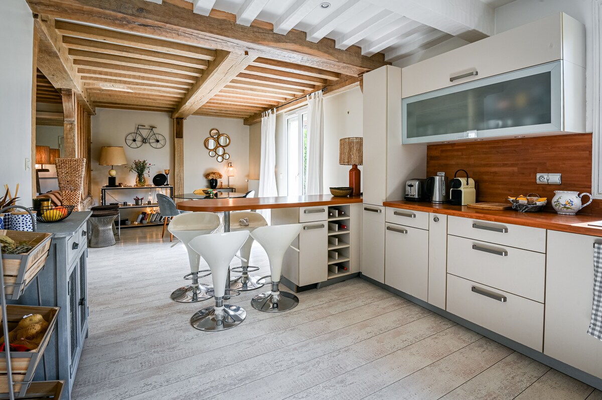 Trakteer jezelf op een Normandische vakantie in een chique en elegante duplex, ideaal gelegen in het hart van het charmante historische dorp Touques, tegenover de Saint Thomas kerk en op slechts een paar minuten fietsen van de stranden en de levendigheid van Trouville en Deauville. Een verfijnde pied-à-terre om optimaal te genieten van de Côte Fleurie, tussen authenticiteit en zoetheid van het leven.