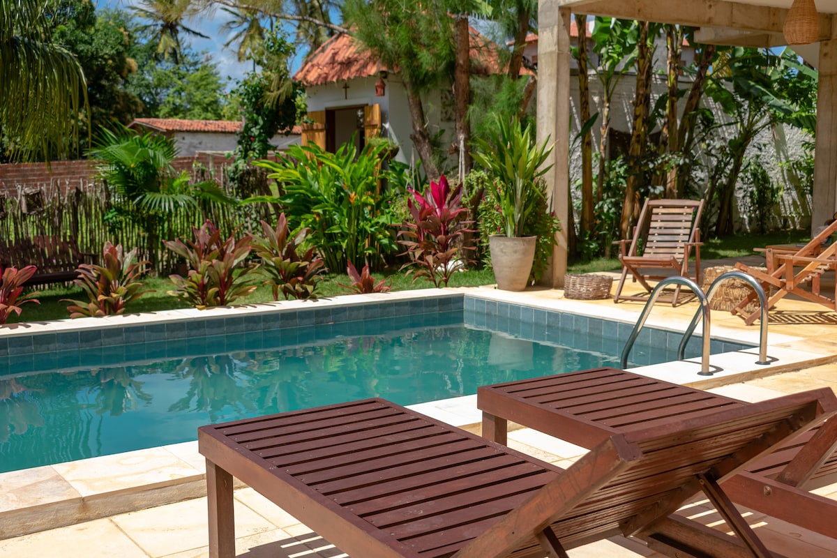 Bem-vindos à Casa Coco Banana, onde o luxo se funde com a natural. Acorde com o canto dos pássaros e o aroma das flores tropicais. Nossa casa foi cuidadosamente projetada para oferecer uma experiência única para casais ou solteiros que buscam conforto e relaxamento. Piscina com Hidromassagem: deixe o estresse derreter sob o sol nordestino. Deck Integrado à Natureza: contemple o verde ao redor. Seja bem-vindo à tranquilidade do Coco Banana! Esperamos vocês para desfrutar essa experiência única!