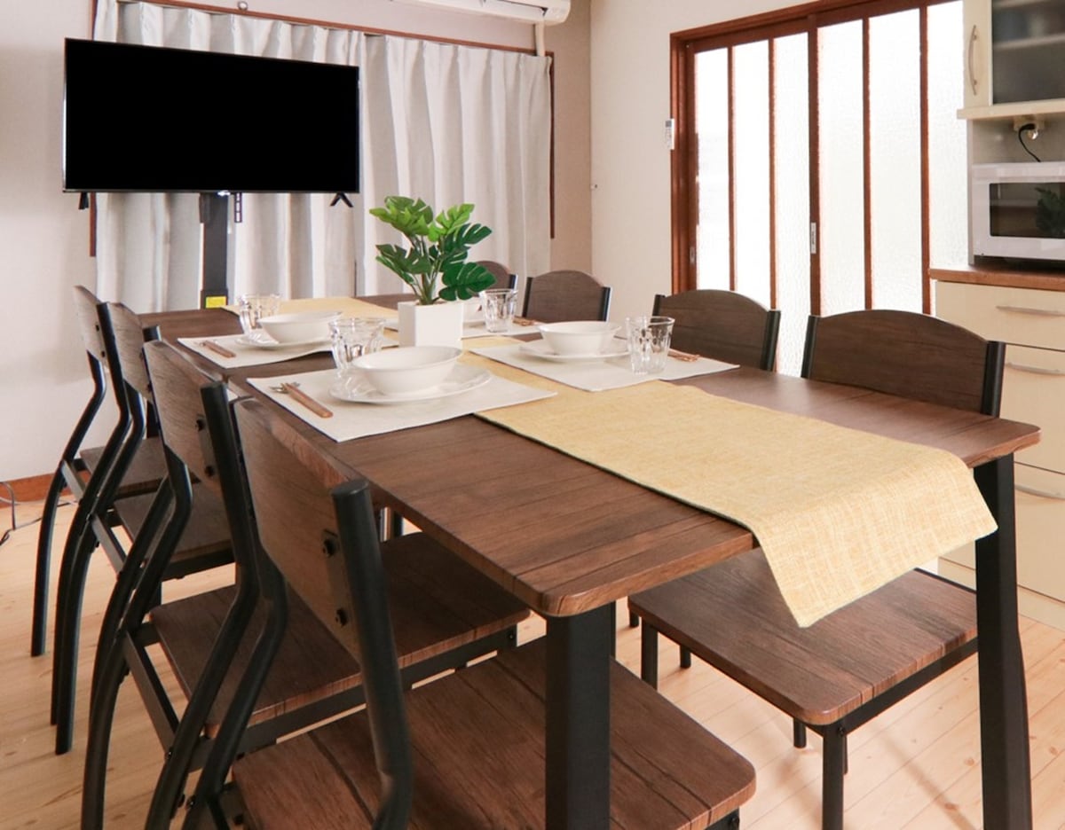 OPEN in maart 2025! ・Het is een ruim huis met een open woonkamer en eetkamer! ・Goede toegang. Het dichtstbijzijnde station is Yagyubashi Station (Atsumi Line), op 10 minuten lopen, één halte van station Toyohashi. Het duurt 20 minuten met Shinkansen naar Nagoya en anderhalf uur voor Tokio en Osaka elk. ・Volledig uitgerust met kookgerei en kinderbenodigdheden. Gezinnen zijn welkom. Op 2 minuten lopen ligt een winkelcentrum met een supermarkt, apotheek, etc. op 2 minuten lopen.