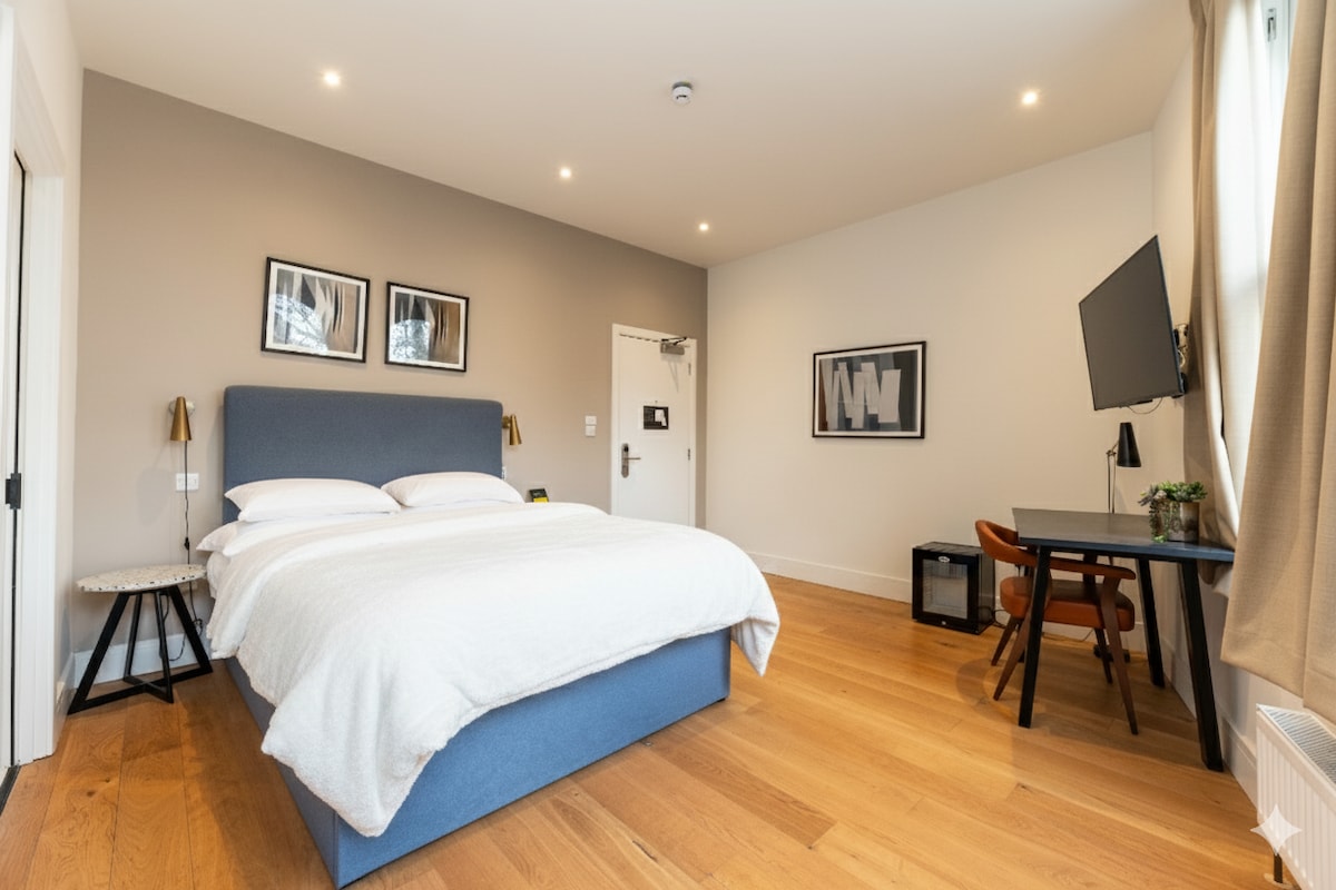 Onze studio-appartementen van 32 m² bieden lakens van Egyptisch katoen, dekens van merinowol en luxe voorzieningen van The White Company. Blijf verbonden met gratis wifi, geniet van een film op de HD-tv en kook in de volledig uitgeruste keuken met Nespresso-apparaat. Begin je dag met een ontbijtpakket en geniet van het gemak van een vaatwasser, wasmachine/droger en kluis voor een perfect verblijf.