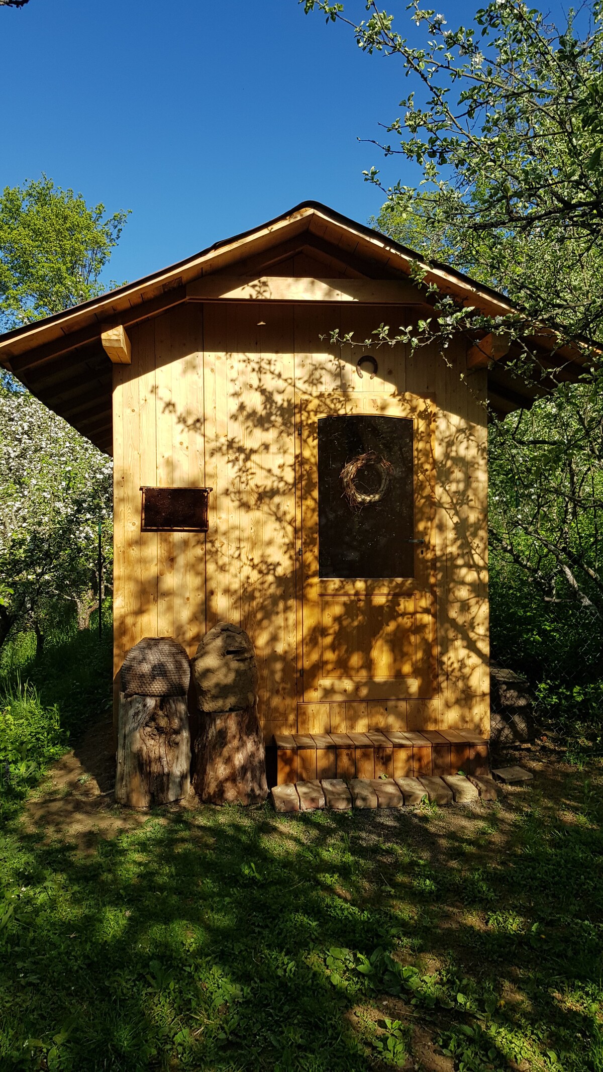 Nooit te klein. Tiny Glamping accommodatie in Partizánsky met Finse sauna in abrikozen tuin van Báger. AIVA dient ook als een creatieve werkplek voor individuen die het kantoor moeten vervangen door een rustige tuin voor een rustige tuin. Tiny House upcykling version of Ávie. Met de nadruk op ecologie is off-grid zelfvoorzienend, maar vol met moderne technologie. Kom en probeer minimalisme in de praktijk te ervaren en ga morgen verder met beter. #neverendingsauna #aivaglamping