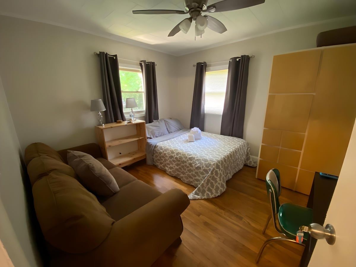 Geniet van je ochtendkoffie terwijl je naar de blauwe gaays luistert! Deze appartementsstudio ligt aan een rustige straat vol bomen, maar nog steeds op minder dan vijf minuten van het treinstation van Hamilton en de 295. Slechts 15 min van Princeton. Perfect toevluchtsoord voor reizigers of gemakkelijk woon-werkverkeer voor stadswerkers, 45 minuten van Philly en 1 uur van NYC. Eigen ingang leidt naar een bovenappartement met ruime woon-/slaapkamer aan de ene kant en een praktische kitchenette/badkamer aan de andere kant.